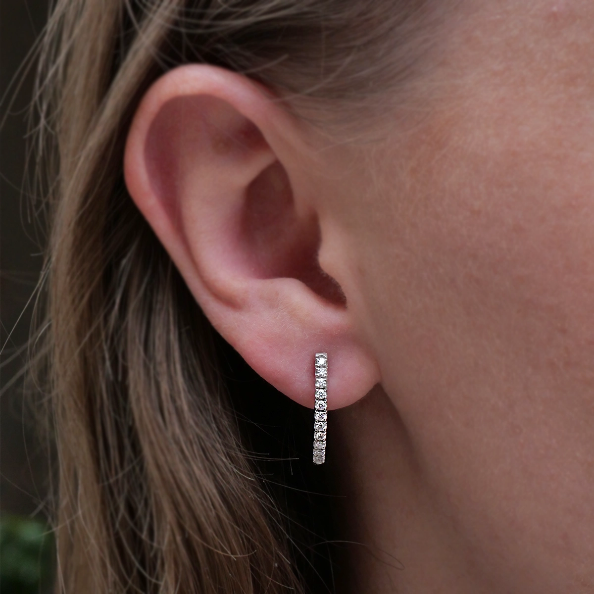 Elke oorbel is bezet met zorgvuldig geselecteerde natuurlijke diamanten met een totaalgewicht van 0,34 karaat.